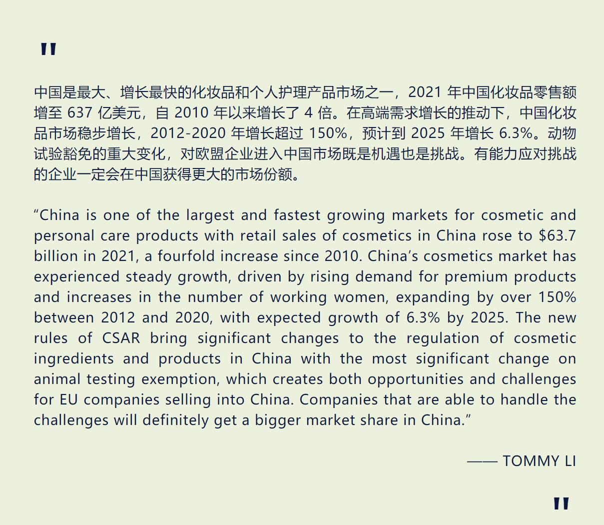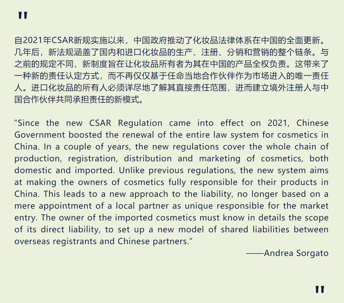 对于境外化妆品生产企业而言,《化妆品监督管理条例》为其进入中国市场提供了更顺畅的通道、更精简的流程和更高的确定性。新条例强化了化妆品企业的主体责任,并为中国监管部门提供了更为多样的监管手段,也设置了合理的触发机制。具有丰富合规经验的国际化妆品企业应能从容应对新规带来的变化。同时,境外化妆品生产企业应当关注中国化妆品行业新规的进展,以积极应对新规带来的责任升级,并有效利用新规创造的开放市场氛围以及透明的监管手段。