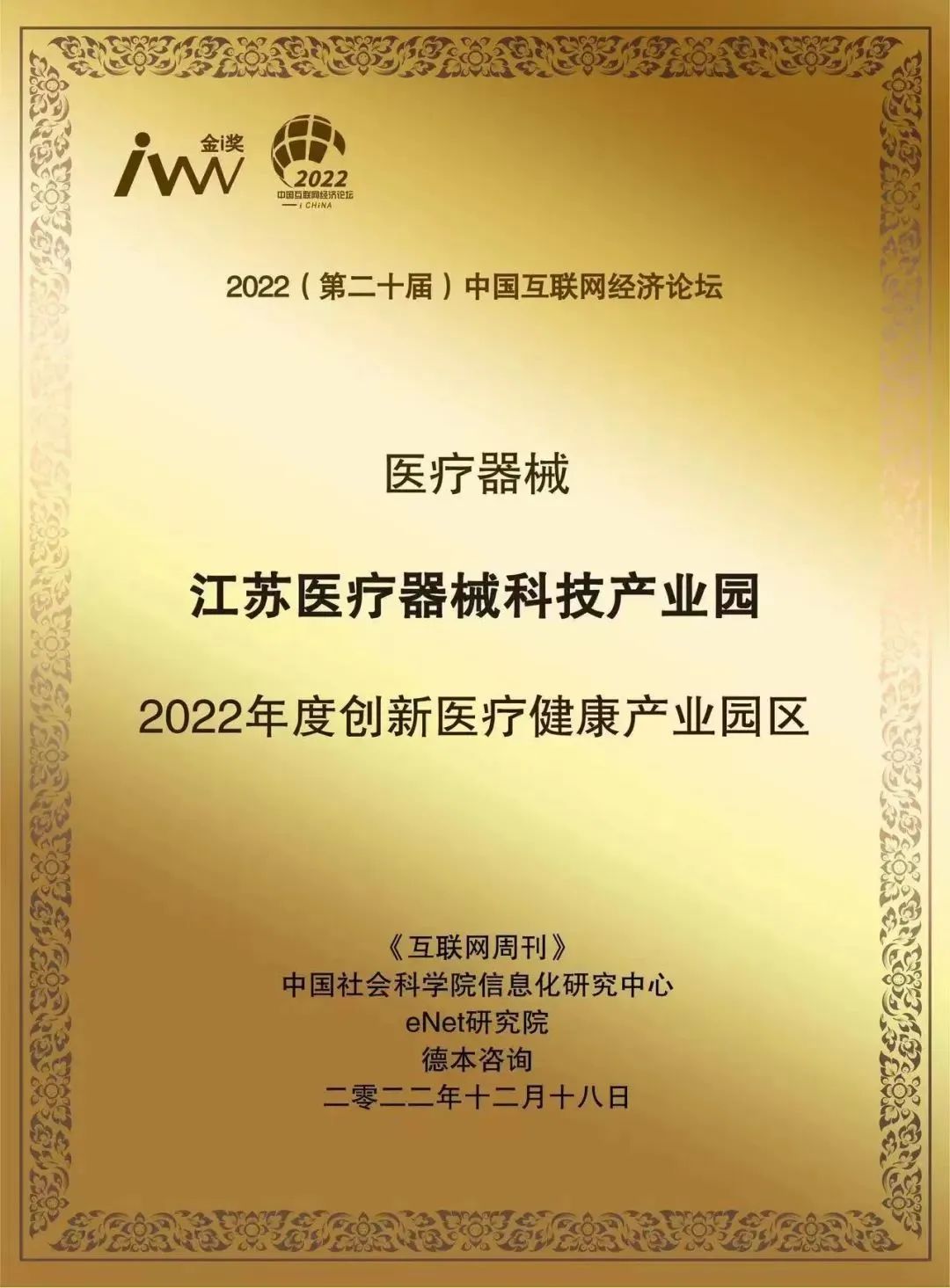 Medpark获得“金i奖”2022年度创新医疗健康产业园区,是医疗器械领域唯一获奖单位。